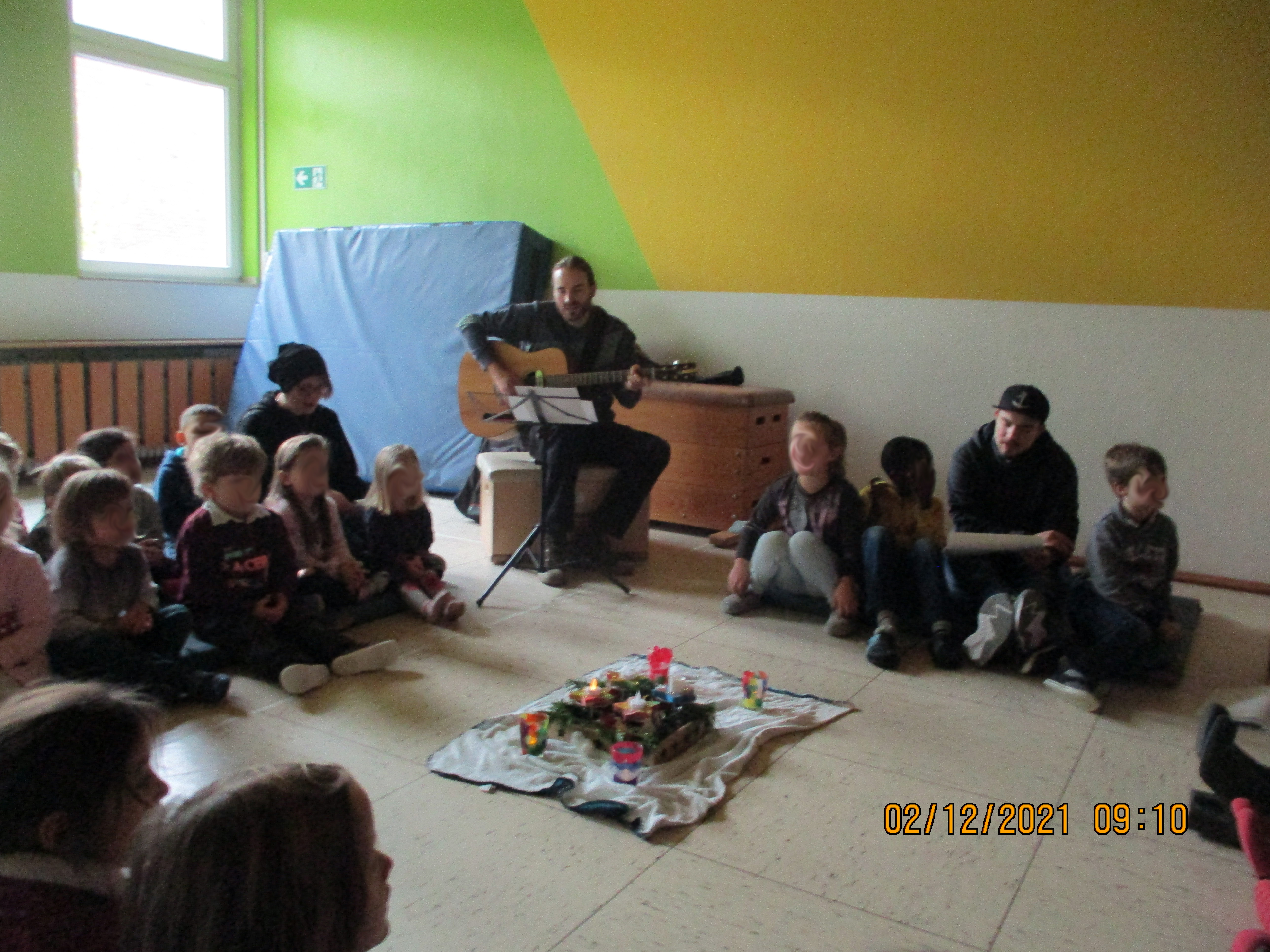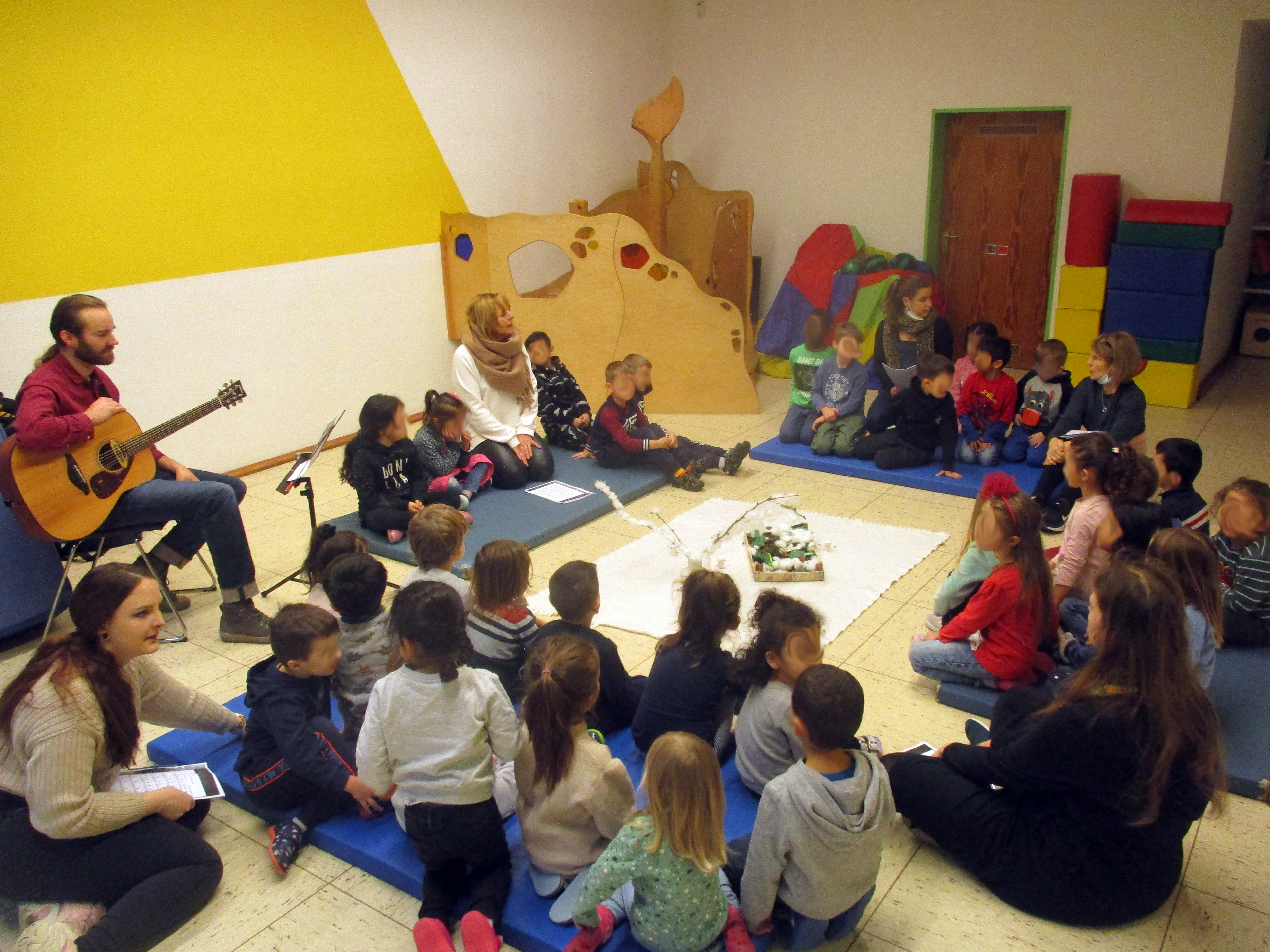 Jeden Donnerstag treffen wir uns mit allen Kindern der Einrichtung in der Turnhalle oder in unserem Garten, um gemeinsam zu singen. Besonders viel Freude bereitet es uns, wenn wir dazu mit der Gitarre begleitet werden!