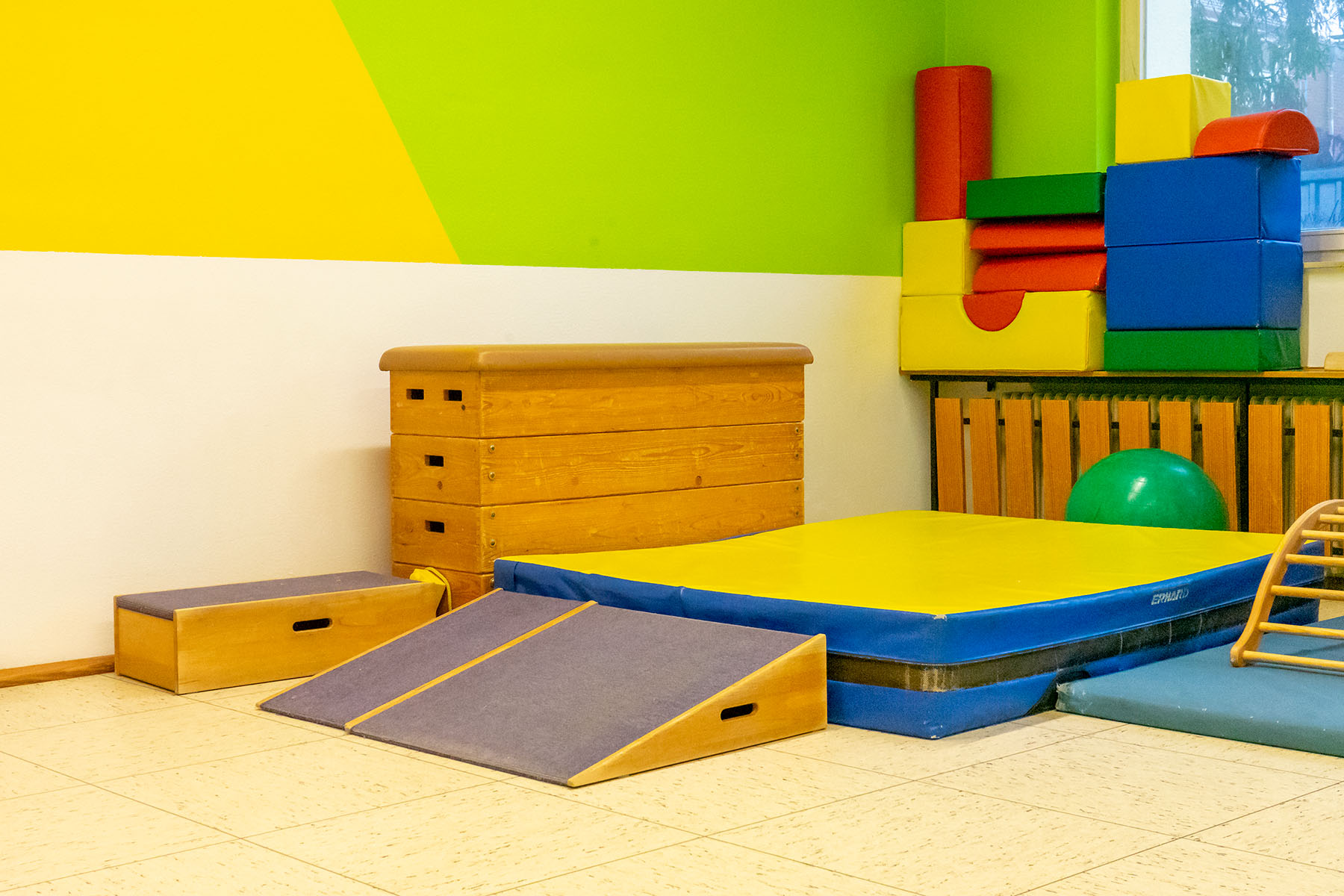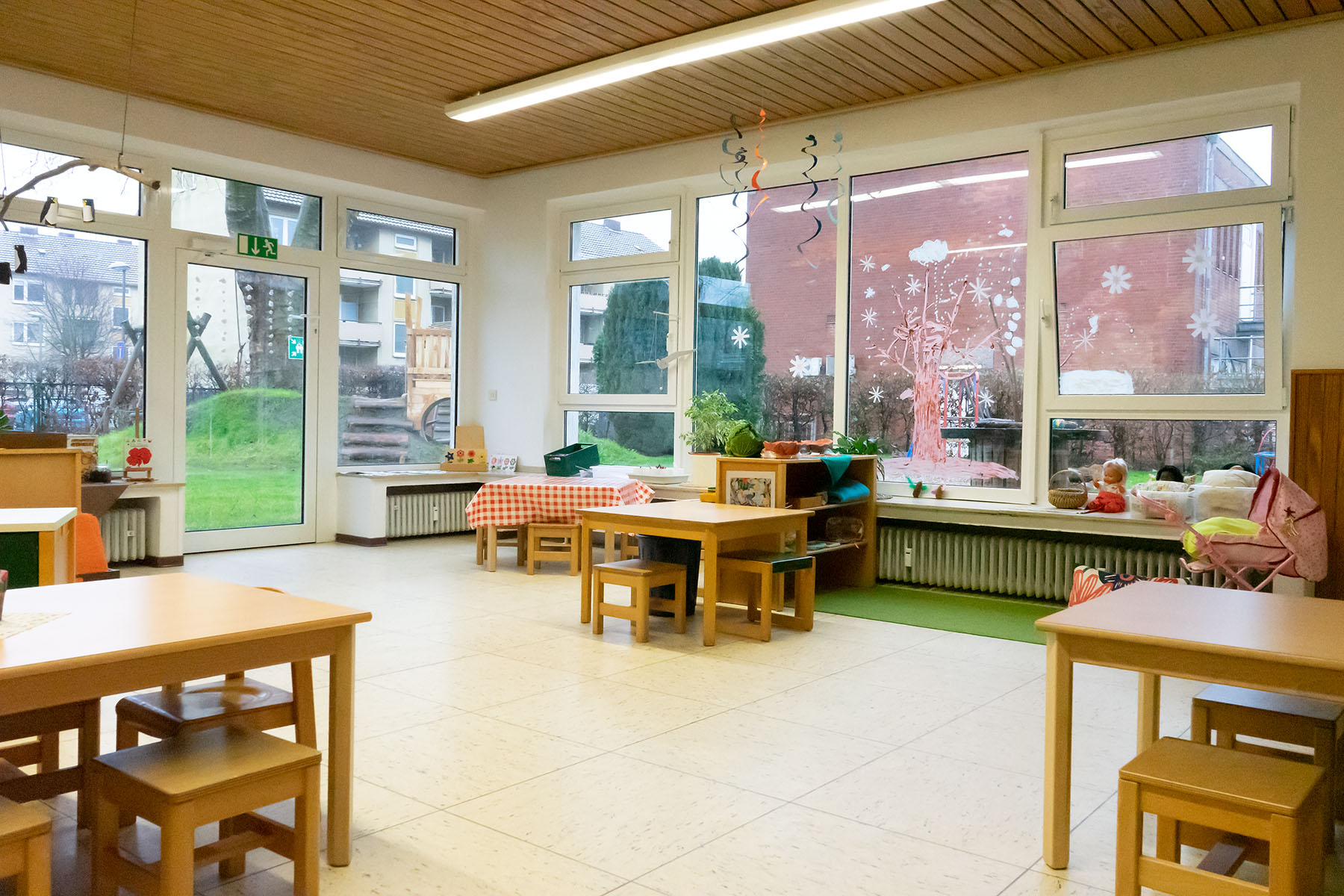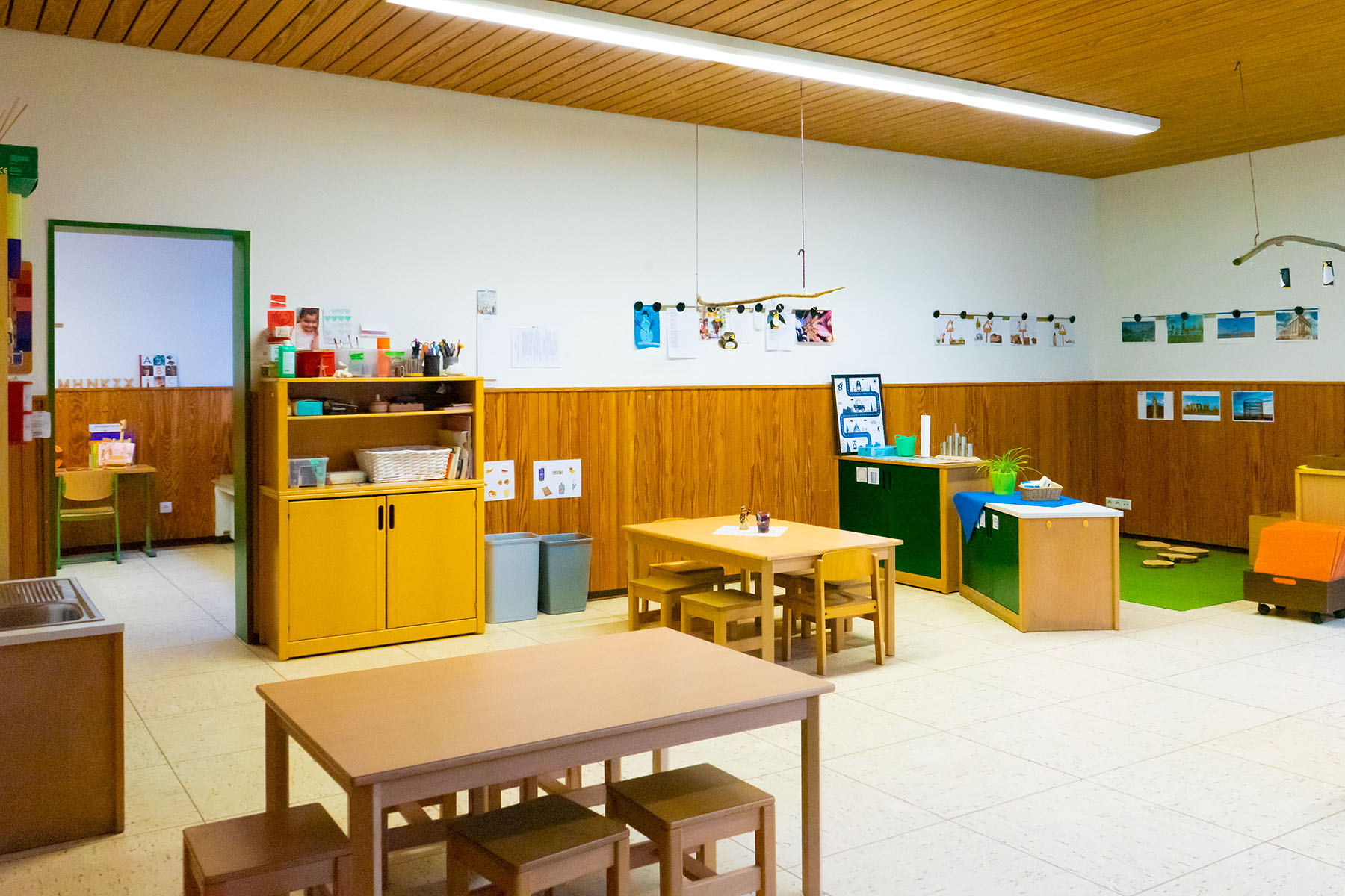Zu jedem der beiden Hauptgruppenräume gibt es noch einen kleineren Nebenraum sowie einen Waschraum. Zum Toben steht den Kindern neben dem Außengelände ein Bewegungsraum zur Verfügung.
