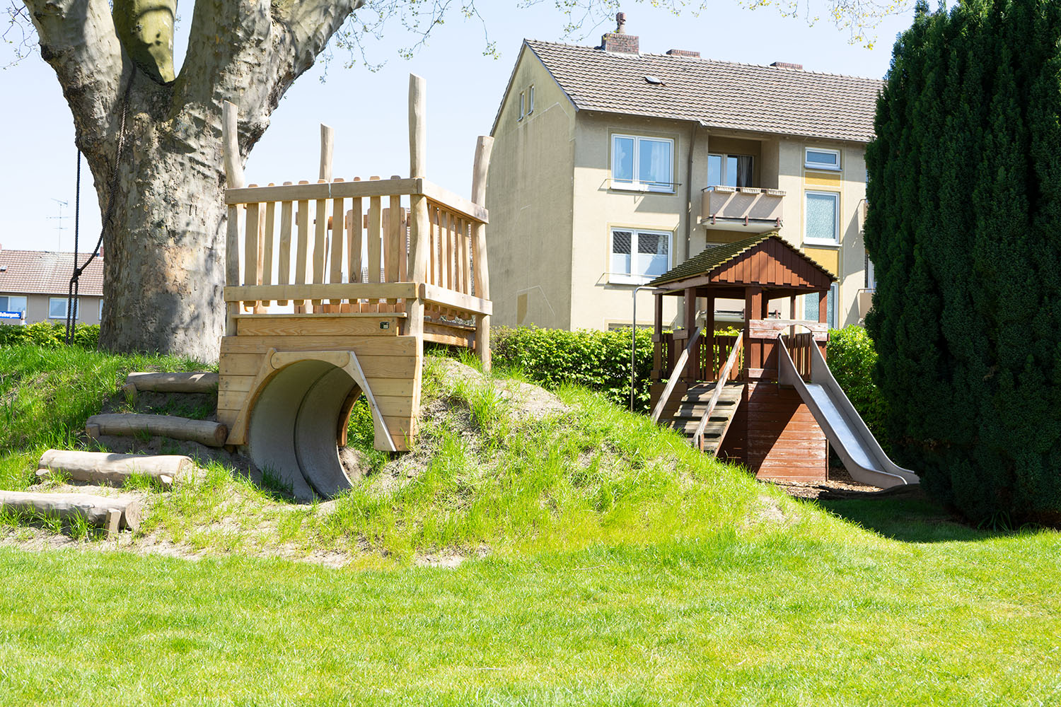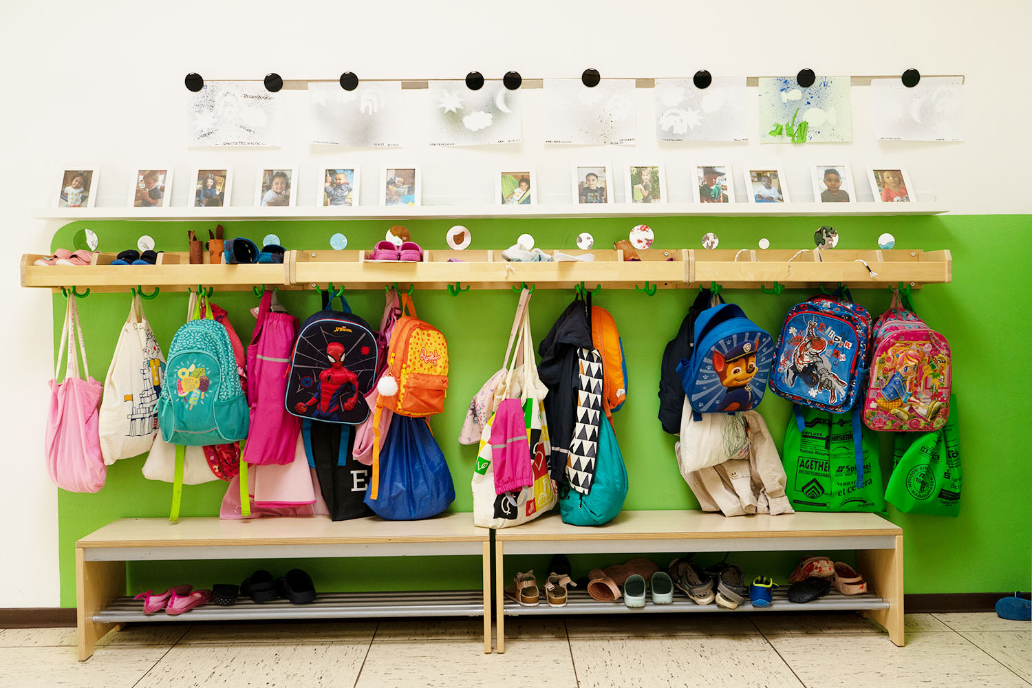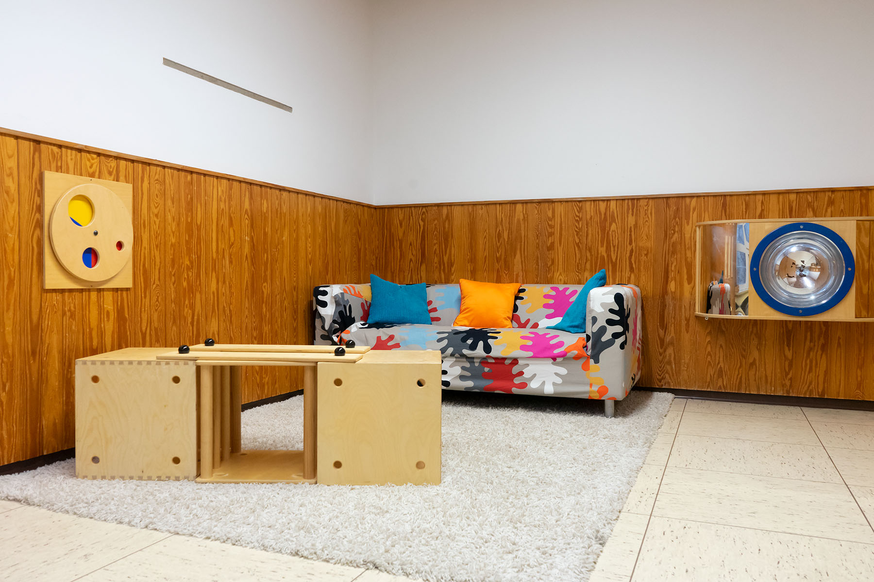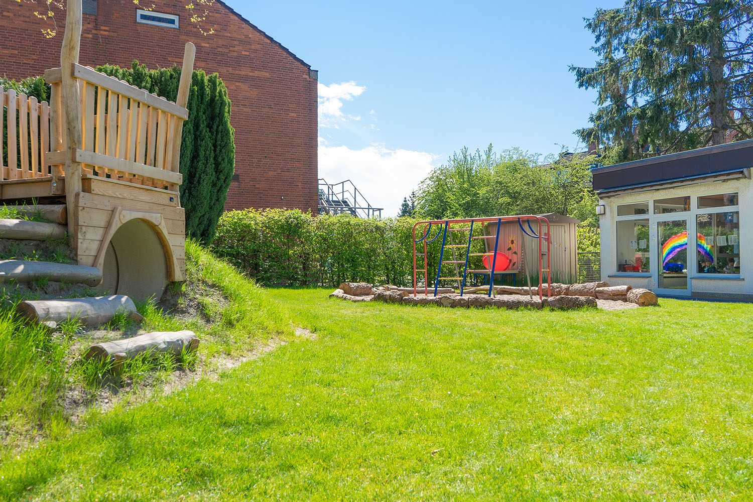 Zu jedem der beiden Hauptgruppenräume gibt es noch einen kleineren Nebenraum sowie einen Waschraum. Zum Toben steht den Kindern neben dem Außengelände ein Bewegungsraum zur Verfügung.